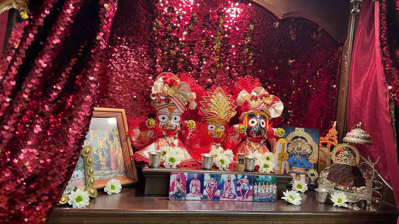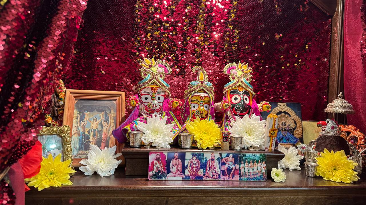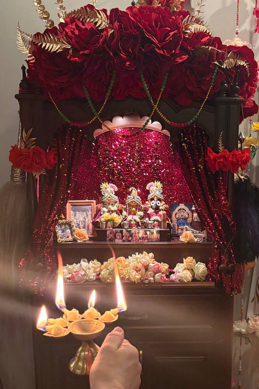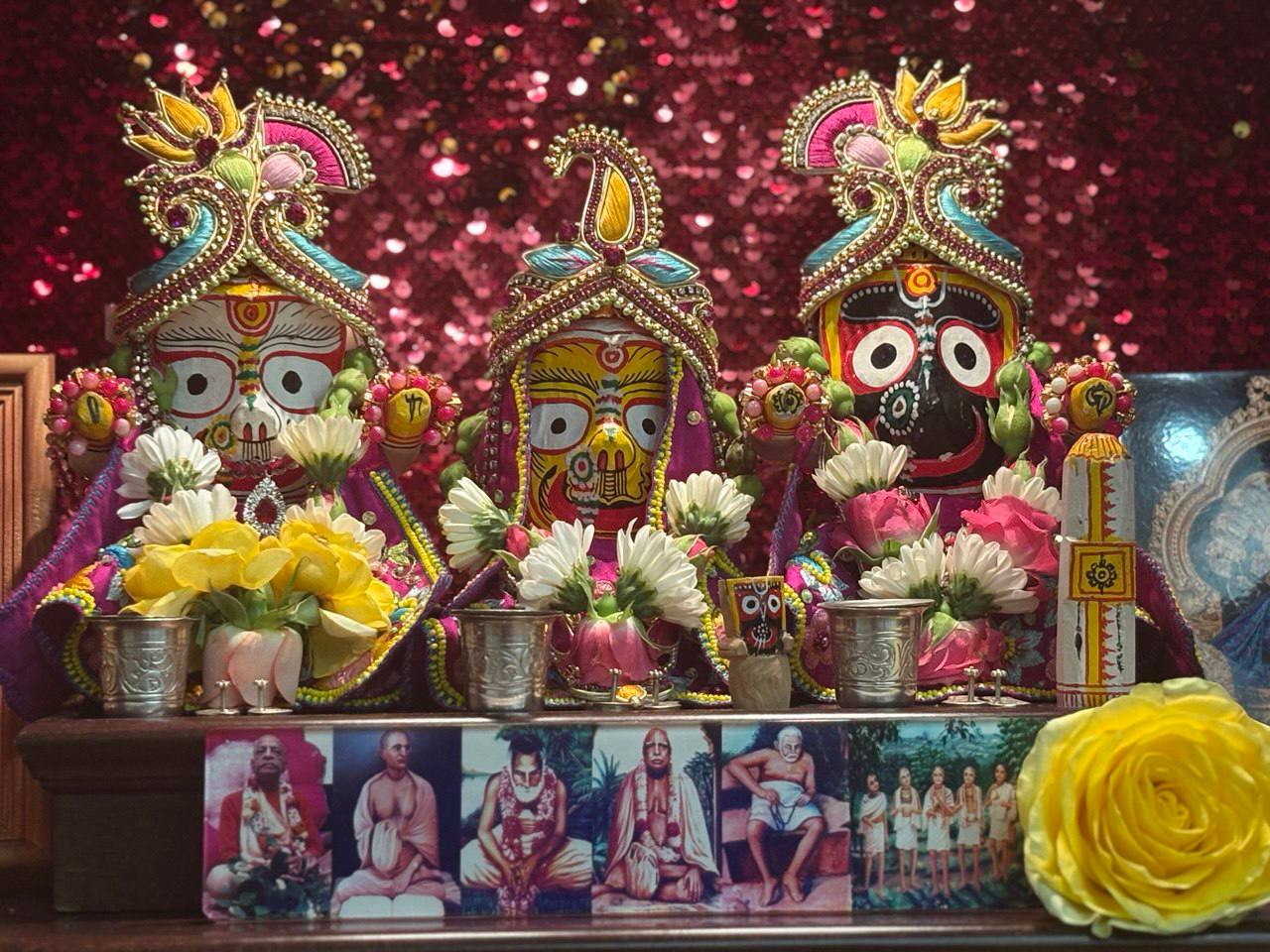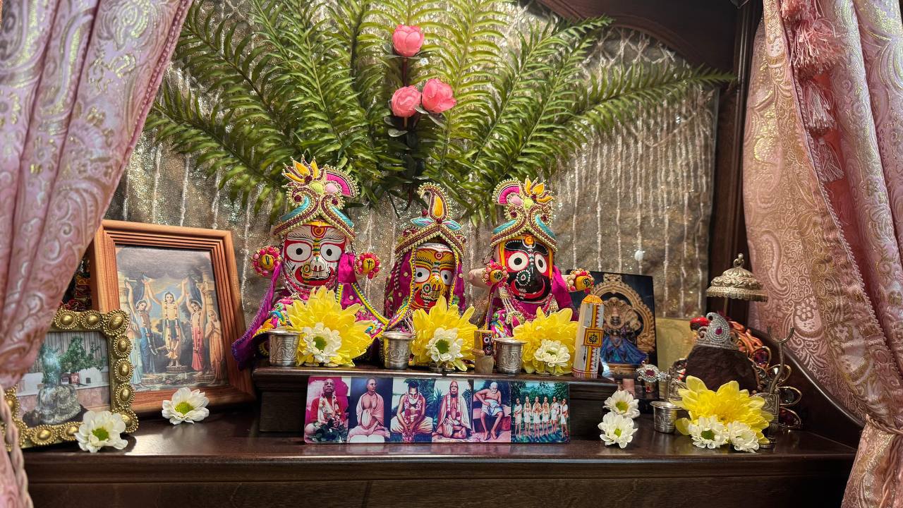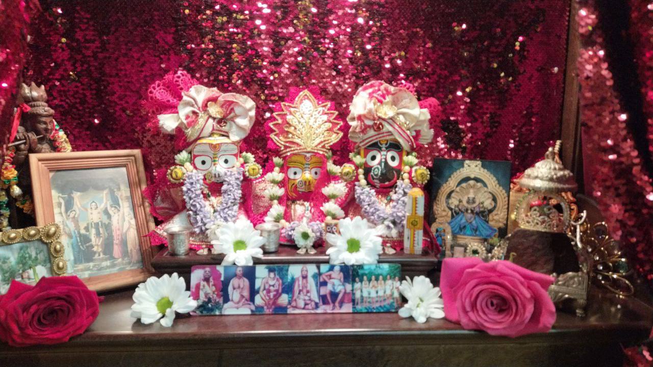 Сегодня утром в клубе провели пуджу для Джаганнатхи, Баладевы, Субхадры, Гирираджа Махараджа, Панчататвы и Господа Нарасимхи!