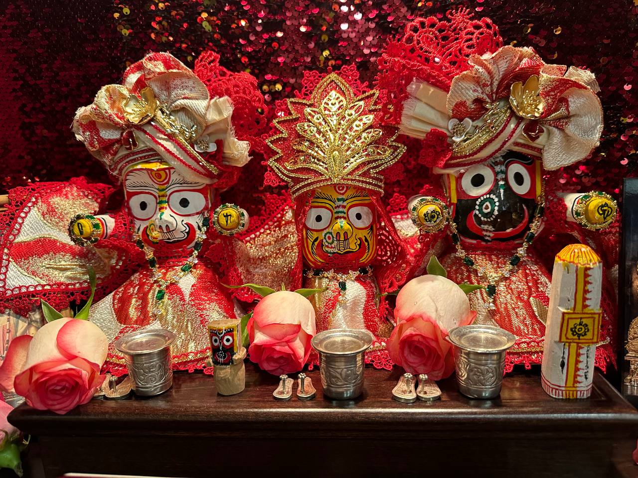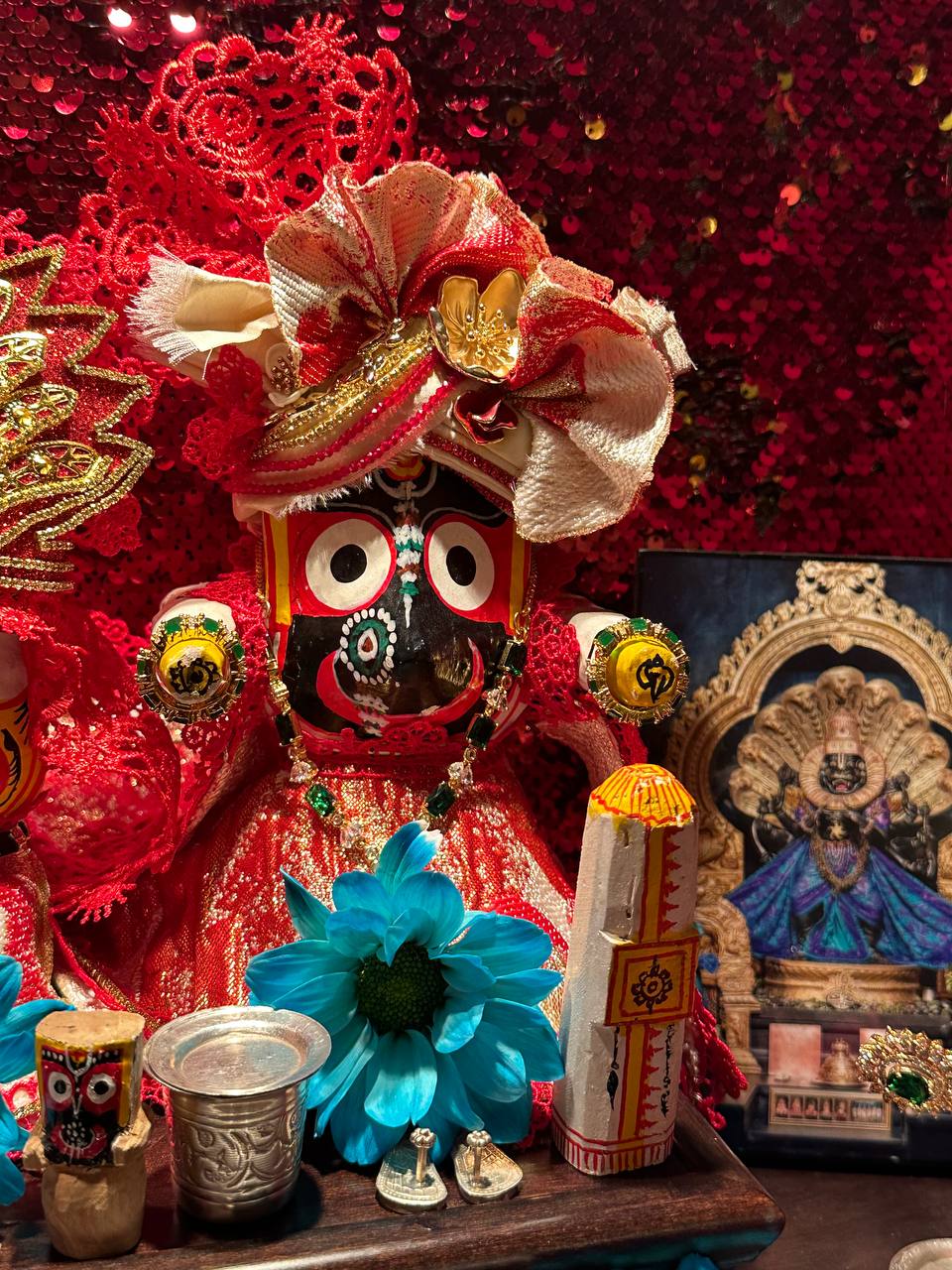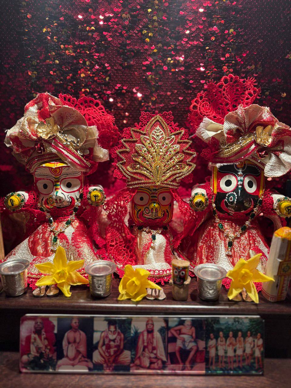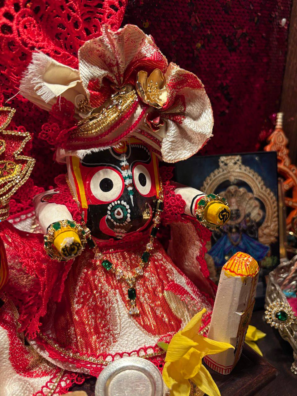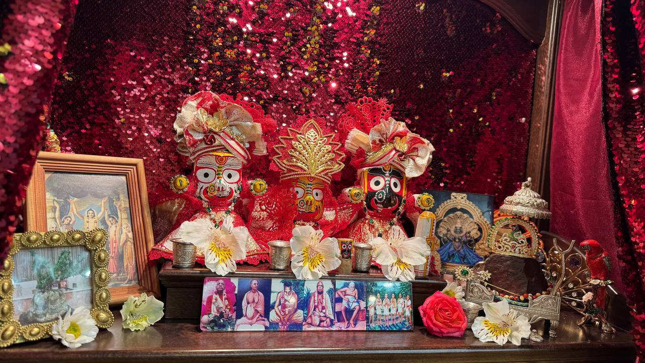 Сегодня утром в клубе провели пуджу для Джаганнатхи, Баладевы, Субхадры, Гирираджа Махараджа, Панчататвы и Господа Нарасимхи!