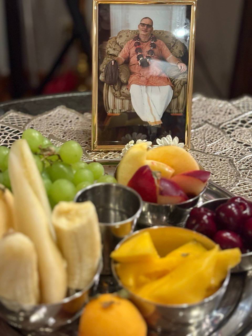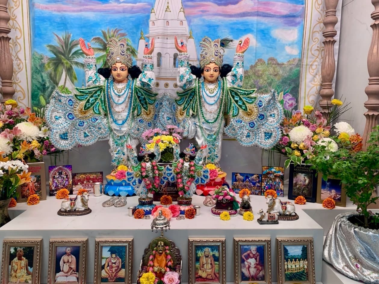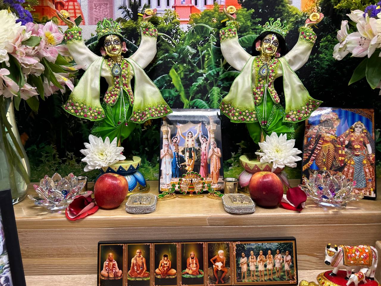 Харе Кришна Дорогой Гуру Махарадж примите пожалуйста мои смирение поклоны, и всем моим духовным братям и сëстрам так же. От всего сердца💞хочу сказать что очень рад за всех вас, что благодаря Гуру Махараджу и преданному служению мы все ученики имеем такой возможность собраться в месте для воспевания святых имён Господа, и для других торжеств ,которие как на фотках печетлени очень красивой форме приближают нас к паниманию как своих лекциях говорит Гурудев, что каждый день от всего сердца надо придаться лотосным стопам Верховной личности Бога Кришны. Воспевание Святых имён Господа, это и есть принятие в своём сердце Кришну. При правильном концентрации, если взять в руки счетки тут же Параматма создает прямой связ между нами и с Кришной.толко без конечние тренировки повторение святых имён дадут результаты,. Желаю всем духовных продвижени в сознание Кришны мои смирение паклоны всем. Харе Кришна Джай Шрил Прабхупад, Джай Гуру Махарадж.