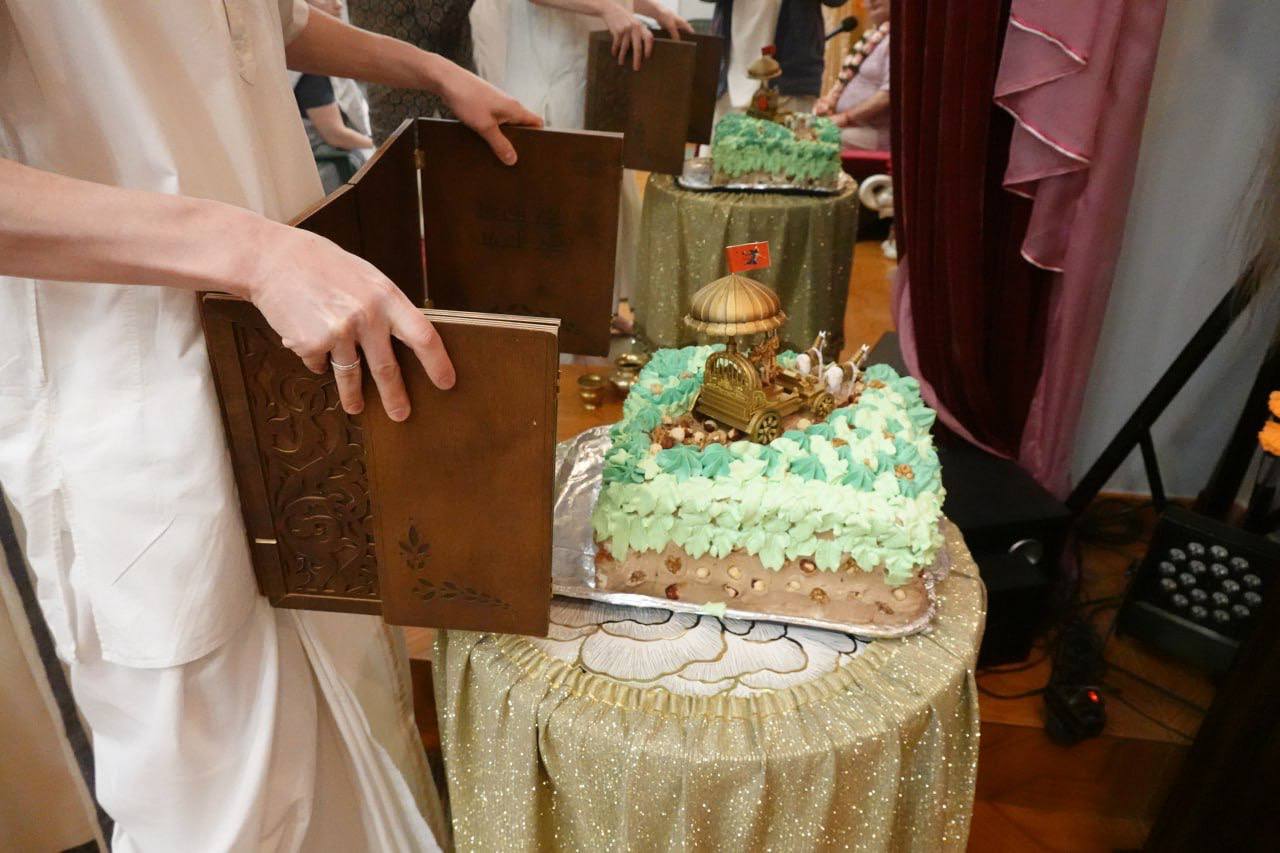 Вчера в клубе праздновали Гита-Джаянти, провели пуджу, пушпанджали и накормили Господа вкуснейшим тортом, спасибо команде, которая постаралась и приготовила!